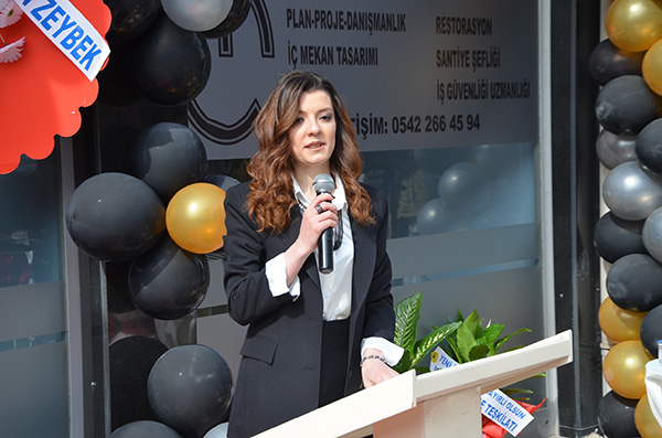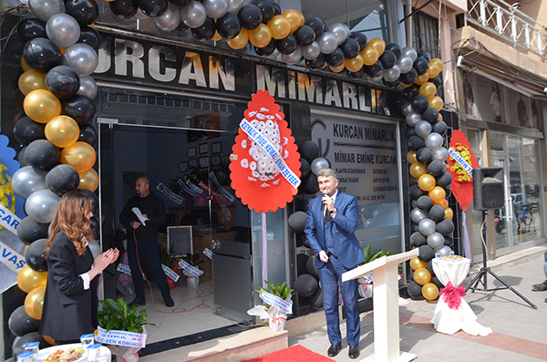 Kurcan Mimarlık Ofisi bugün düzenlenen tören ile hizmete açıldı. Açılış töreninde ilk olarak Kurcan Mimarlık sahibi Emine Kurcan konuşmasını yaptı ve tüm misafirlere açılış programına katıldıkları için teşekkür etti.