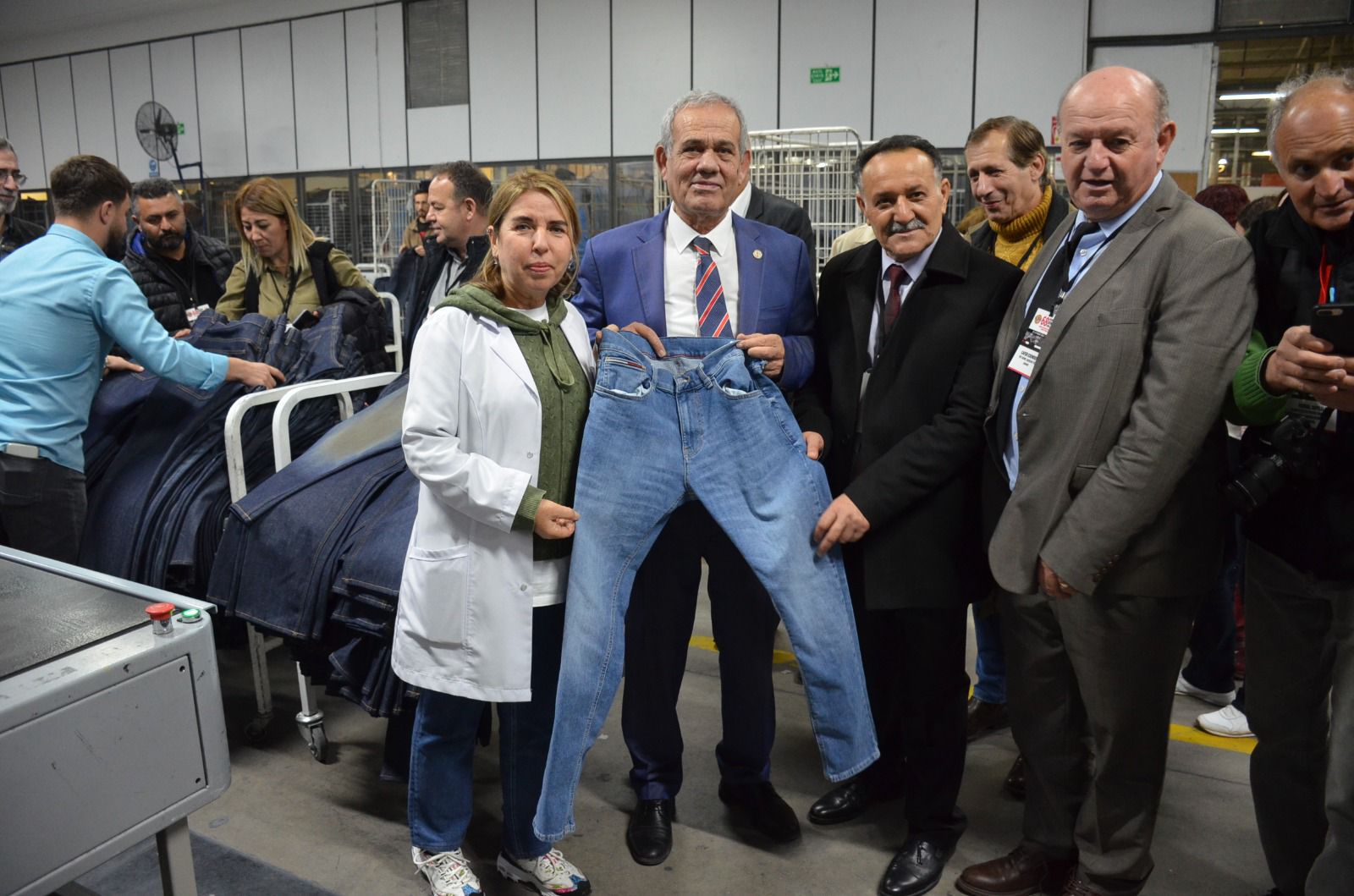 Eroğlu Holding bünyesindeki Colin’s, Loft gibi ünlü markaların üretildiği fabrikayı gezen gazeteciler üretim tesislerine hayran kaldı. Fabrika Müdürü Meral Gökçe, TGF heyetine kot pantolon üretiminin aşamalarını tüm bölümleri gezdirerek anlattı. 3 bin civarında işçinin çalıştığı fabrikada aylık 7 milyon adet kot pantolon üretildiği belirtildi.