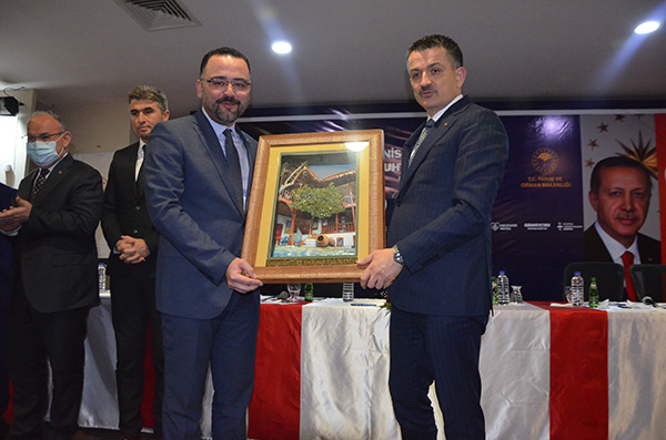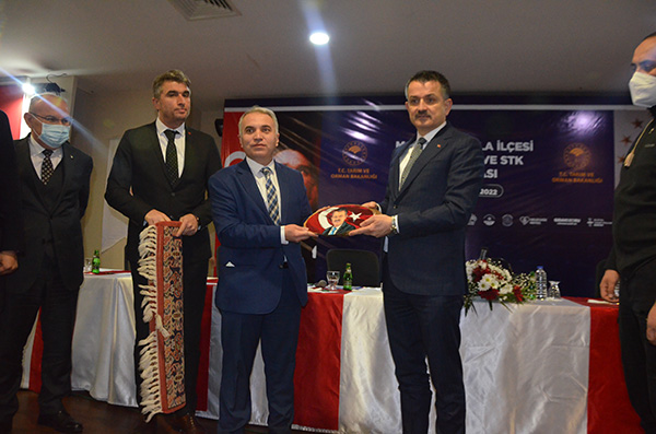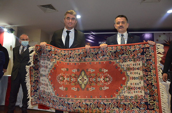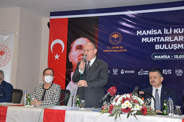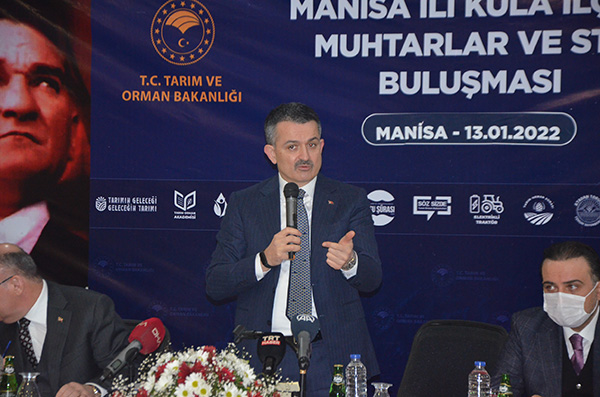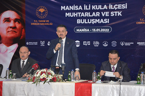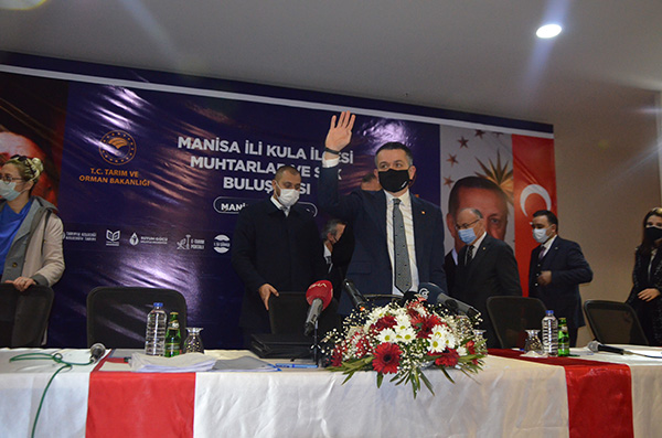 Bakan Pakdemirli’nin Kula’ya yapılan yatırımlar ve desteklerle ilgili bilgilendirme yaptığı toplantıda muhtarlar ve sektör temsilcilerine söz verildi. Program, hediyelerin takdimi ve hatıra fotoğrafı çektirilmesiyle son buldu.