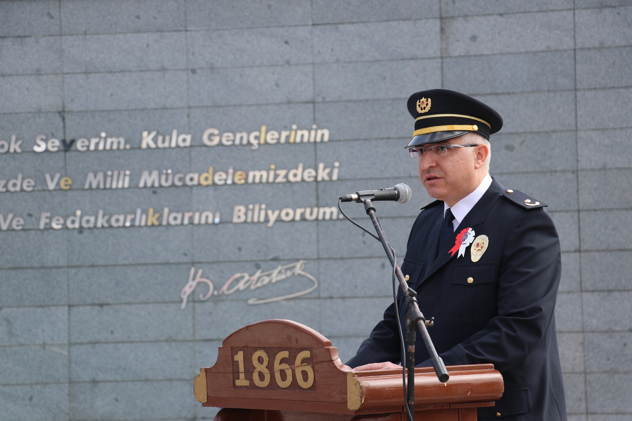 Türk Polis Teşkilatının, kuruluşunun 178. Yılı kutlamaları Atatürk anıtına çelenk konulmasıyla başlarken saygı duruşu ve İstiklal marşının okunmasıyla devam etti. Kula İlçe Emniyet müdürü Alı Rıza Gökmen’nin günün anlam ve önemini belirten konuşmasının ardından protokol üyeleri Kula şehitliğini ziyaret etti ve program son buldu.