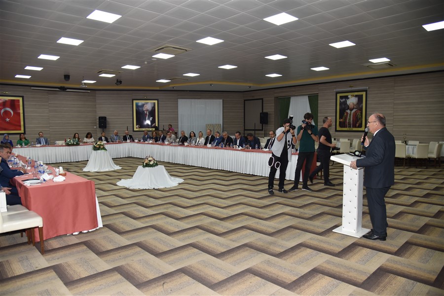 Vali Yaşar Karadeniz ise yaptığı konuşmada; “Üç yılı aşkın süredir Manisa’da görev yapıyorum. Bu benim Ege Bölgesi’ndeki ilk görev tecrübemdi. Manisa Türkiye’nin özeti gibi. Manisa’nın yerlisi var, Balkan göçmenleri var ve diğer civardaki Girit’ten, Rodos’tan göçmenler var. Karadeniz Bölgesi var, Doğu Anadolu, Güneydoğu Anadolu Bölgesi var. Bu anlamda aslında Türkiye’nin küçük bir özeti. Buraya gelmeden önce Manisa deyince aklıma iki şey gelirdi. Biri Mesir Macunu, diğeri de Şehzadeler Şehri kavramı. Ama burada çalışkanlığı ve üretkenliği gördüm. Üreten bir şehir olduğunu gördüm. Manisa’nın belki de gizli kalmış yönüdür bu. Bunu konuştuğumuzda da örneğin tarımla ilgili üretim konusuna girdiğimizde bizim topraklarımız verimli, ifadesi kullanılıyor. Doğru, buranın toprakları verimli ama bu işin sadece toprakların verimliliği ile de olmayacağını biliyoruz. Çünkü toprakları verimli olan ben başka yerlerde de çalıştım. Ama sadece tahıl üretimi yapıldığı için o verimli topraklar ancak tahıl üretiminde ve bunun gibi kuru gıda ürünlerde daha çok kullanılıyor. Manisa çiftçisi, Manisa’nın halkı hemen hemen her çeşit ürünü, kimsenin aklına gelmeyecek olan Antep’in Fıstığını da burada üretmiş, domates de üretmiş. Elbette üzüm ve zeytin artık Manisa için markalaşmış ürünler. Bunun yanında et amaçlı tavuk üretiminde de birinci sıraya çıkmış, en fazla traktör bulunan il durumunda. Tüm bunları yan yana koyduğumuzda üç rakamda arka arkaya tarımda beşinci, sanayide altıncı, ihracatta yedinci sırada. İşte onun için diyorum. Tek bir kalemde öne geçip de kalmamış.” dedi.