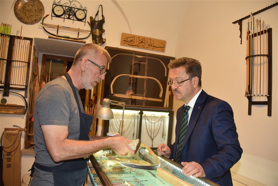 Cumhurbaşkanlığı 09.08.2023 tarihli Valiler Kararnamesiyle Manisa Valisi olarak atanan ve 19.08.2023 günü Manisa’daki görevine başlayan Vali Enver Ünlü, Manisa’yı tanımak için çarşı esnafını ziyaret ederek tarihi Kurşunlu Han’da faaliyet gösteren geleneksel el sanatları atölyelerini gezdi.