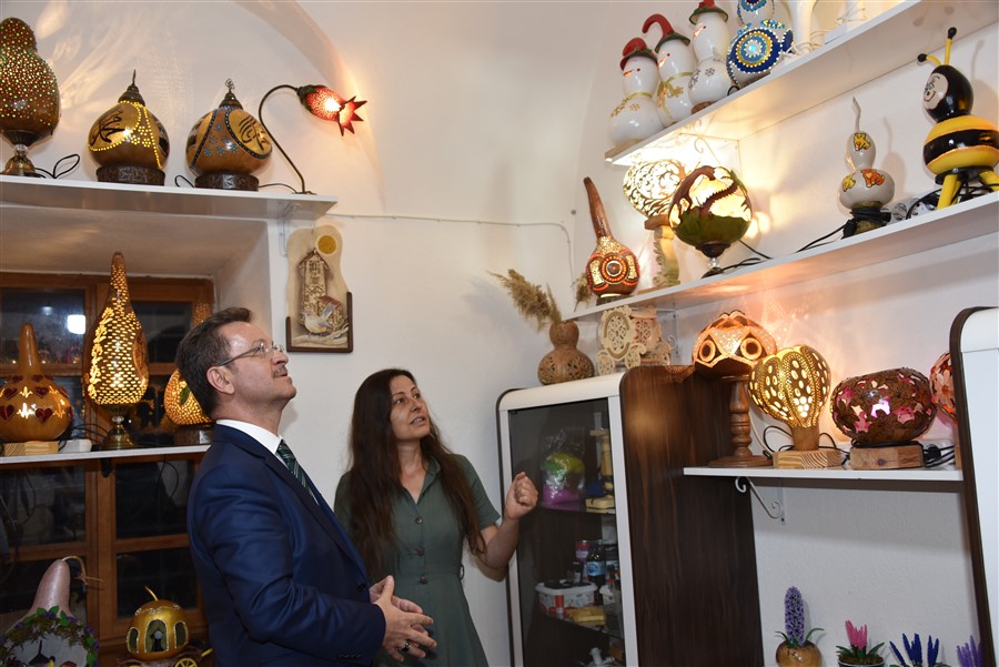 Vali Enver Ünlü daha sonra Hatuniye Camisi ile birlikte külliye olarak yaptırılan ve 2018 yılında tamamlanan restorasyonu sonrası hizmete açılan Kurşunlu Han’da Şehzadeler Belediyesi ve Şehzadeler Halk Eğitim Merkezi’nin katkılarıyla faaliyet gösteren geleneksel el sanatları atölyelerini gezdi.