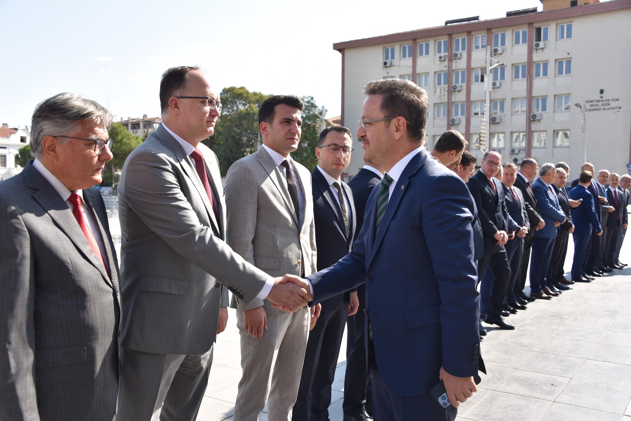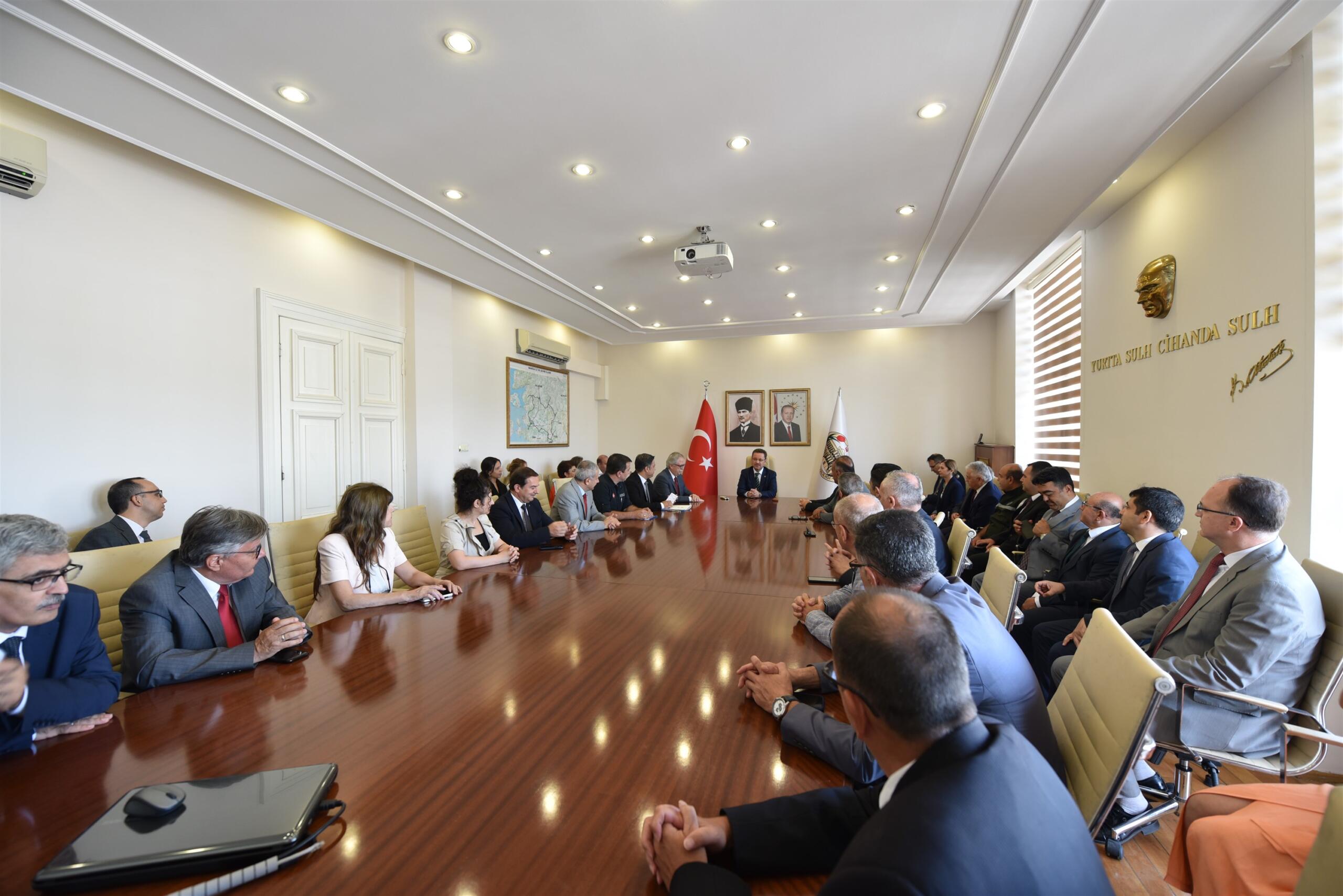 Valilik önünde gerçekleşen karşılama programının ardından Vali Ünlü, İl Jandarma Komutanı Tuğgeneral Zafer Tombul, vali yardımcıları, kaymakamlar ve kurum müdürleri ile birlikte makamında bir araya geldi.