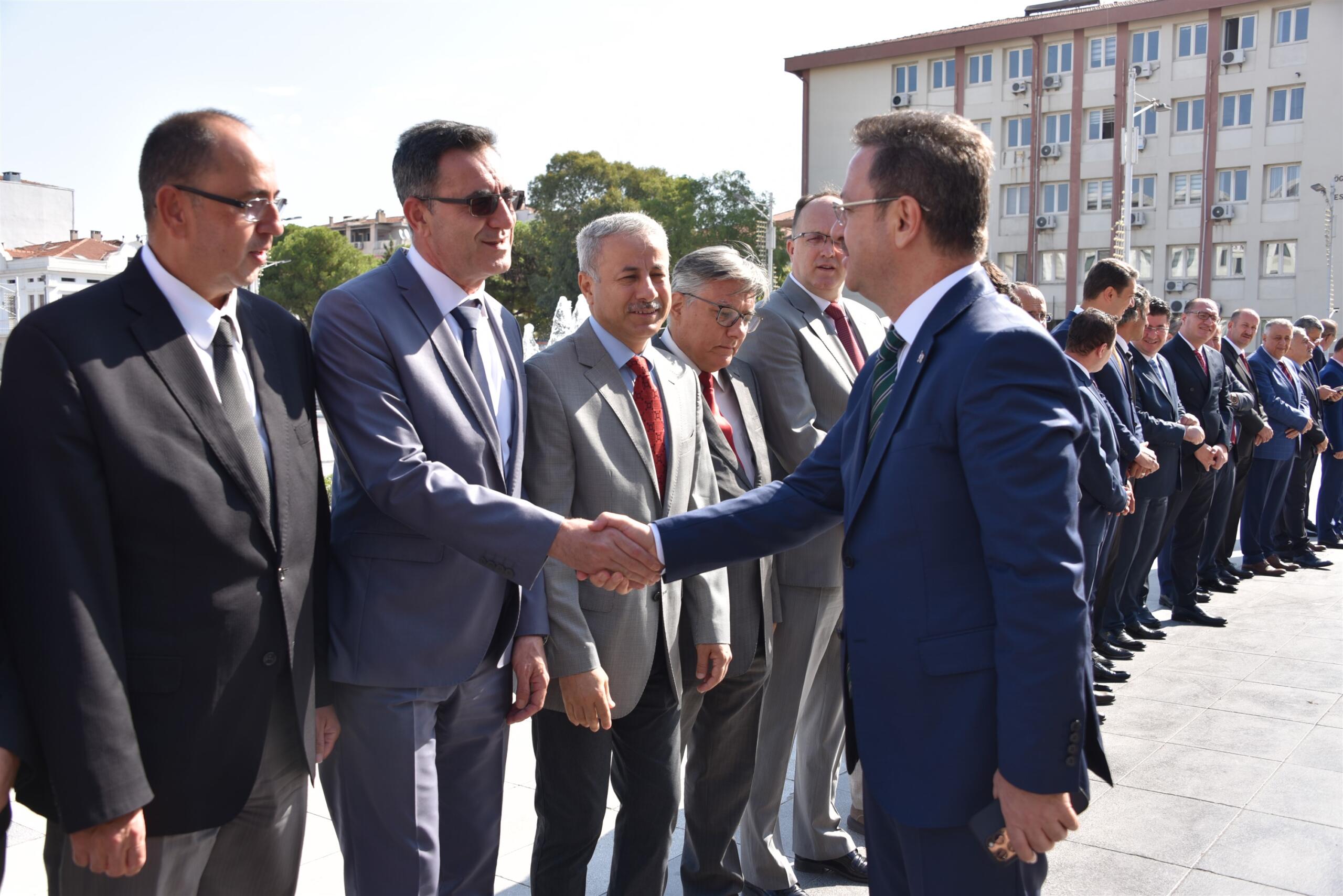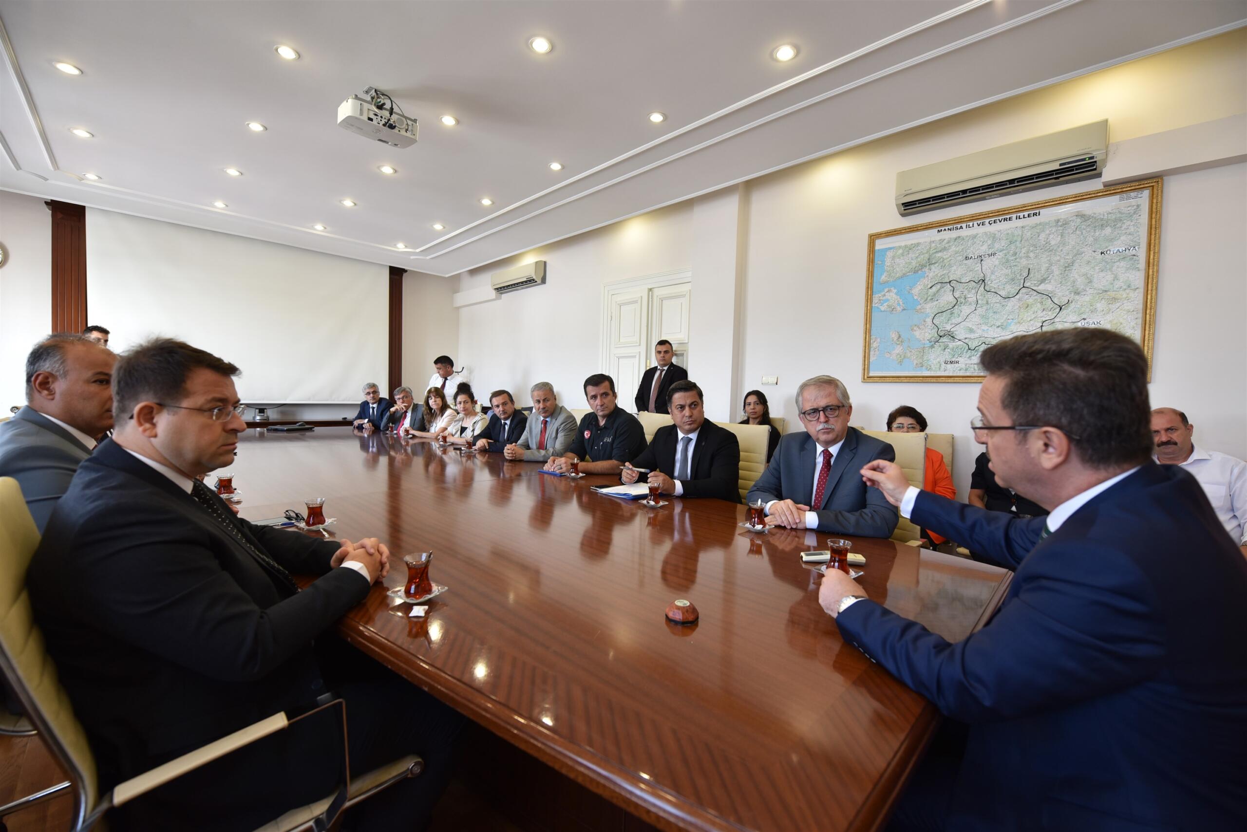 Manisa’nın önemli ve kadim bir şehir olduğunu kaydeden Vali Ünlü, “Tarımla sanayinin birlikte ve dengeli bir uyumu olan Manisa, Ege Bölgesi’nin güzide bir şehri. Rektörümüzle görüştüğümüzde 45 bin öğrencisinin olduğunu öğrendiğimde bu beni çok mutlu etti. Çok büyük ve köklü bir üniversite. Yine turizmde önemli potansiyeli olan bir şehir Manisa’mız. Değerli meslektaşlarımla, kurum amirlerimizle, OSB’lerimizle, odalarımızla, borsamızla, üniversitemizle, sivil toplum kuruluşlarımızla, basın mensuplarımızla beraber inşallah Manisa’mıza güzel hizmetler yapmayı nasip etsin. Bu bir bayrak yarışıdır. Biz sayın Valimiz Yaşar Karadeniz’den aldığımız bu nöbeti inşallah daha ileriye götürüp Manisa’mızı çok daha iyi yerlere taşımayı hedefliyoruz. Mesai mefhumu gözetmeden, halkla hizmet hakka hizmet anlayışıyla hep birlikte çalışacağız. Manisalılardan destek bekliyoruz” şeklinde konuştu.