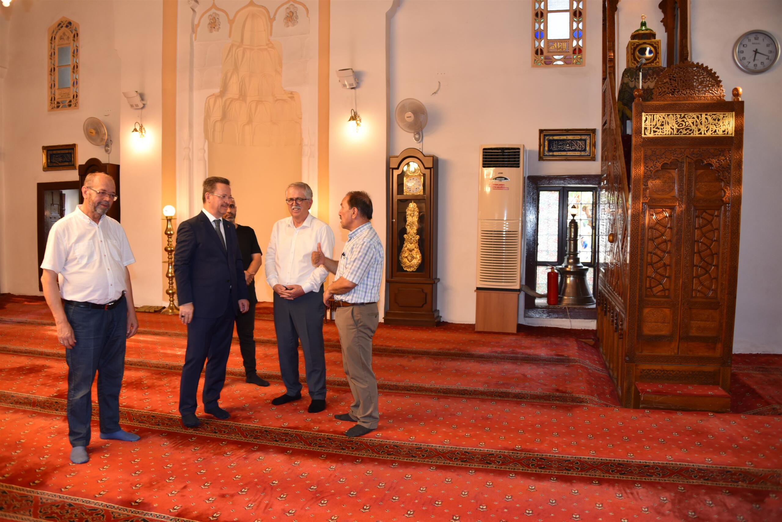 Vali Enver Ünlü, Manisa’yı fethederek Türk vatanı yapan Saruhan Bey’in Türbesi ve tarihi Hatuniye Camisinde incelemelerde bulundu.