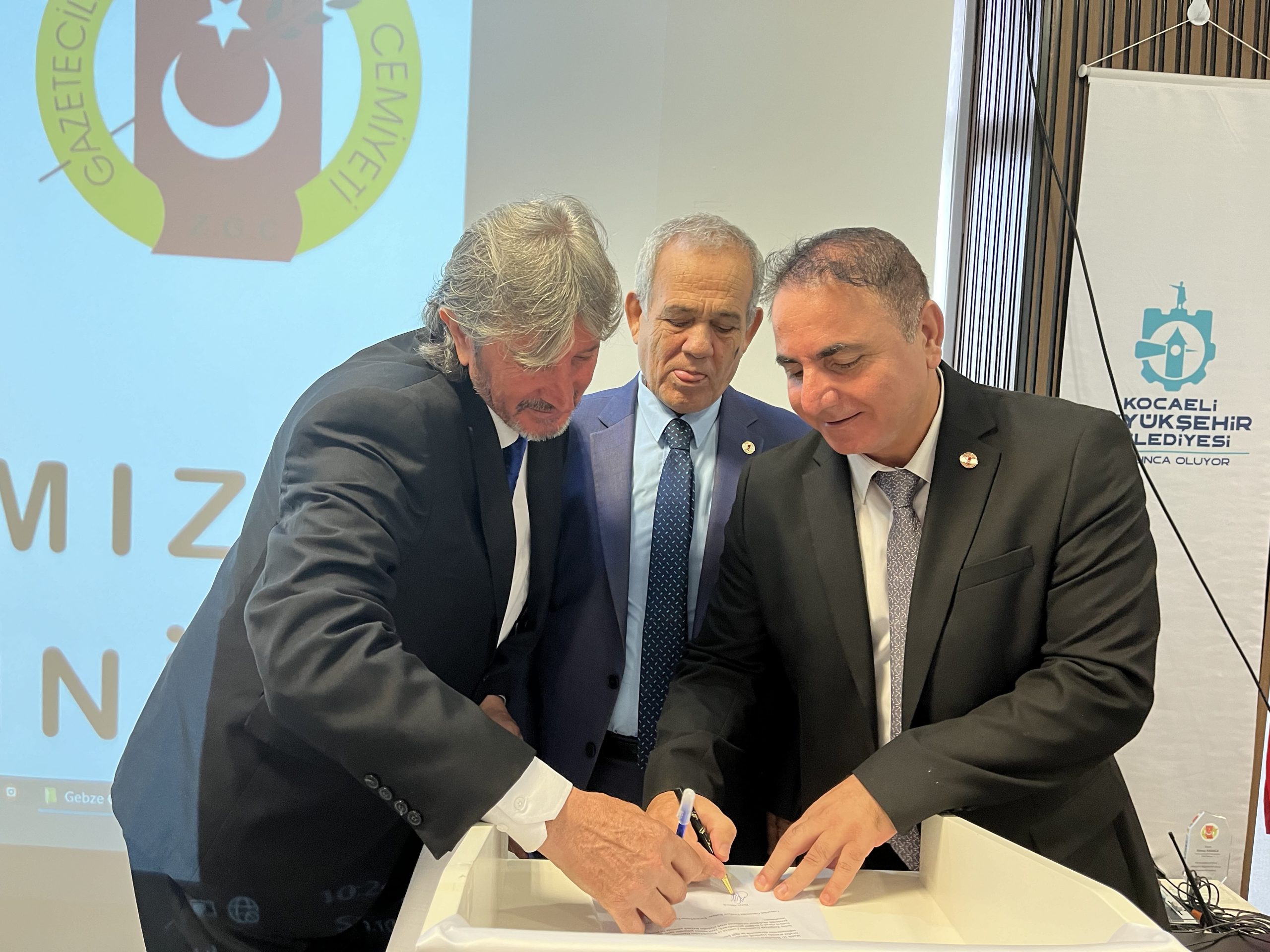 Kardeş proje kapsamında Zonguldak Gazeteciler Cemiyeti başkanı Derya Akbıyık ve Gebze Gazeteciler Cemiyeti başkanı Levent Altun arasında protokol imzalandı. Genel başkan Yılmaz Karaca eşliğinde gerçekleşen törende imzaların ardından ZGC Başkanı Derya Akbıyık Zonguldak Belediye Başkanı Tahsin Erdem’in selamlarını ileterek kendisi adına Zonguldak’tan getirdiği Zonguldak’ın simgesi olan madenci anıtı heykelini Gebze başkanı Levent Altun’a hediye etti. Aynı şekilde Altun’da ZGC başkanı Derya Akbıyık’a plaket takdim etti.
